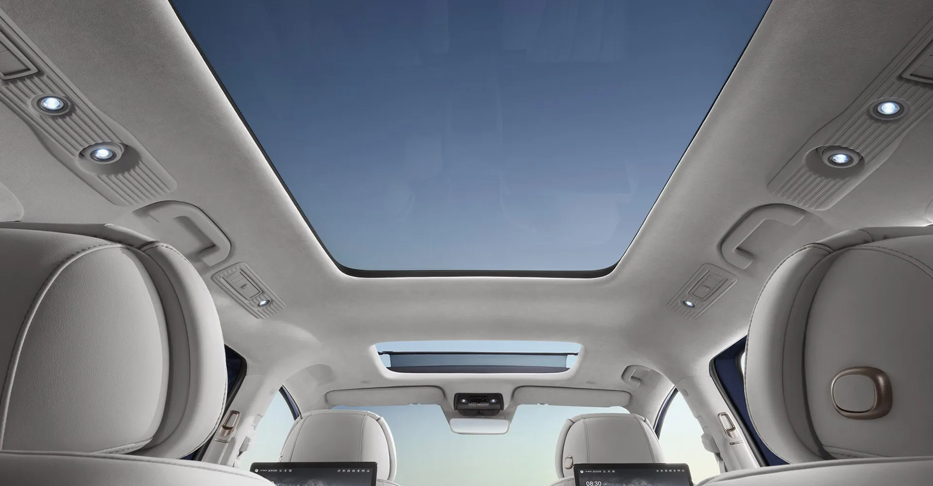 Sunroof panoramik ekstra besar kami menghadirkan cahaya alami, membuat kabin terasa terang dan lapang, dilengkapi dengan kaca dua lapis yang mampu memblokir 99% sinar UV.
